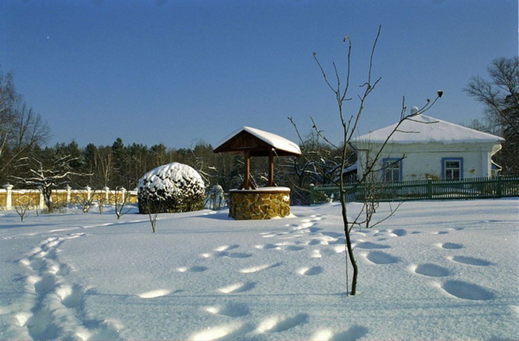 Скит и колодезь во имя Амвросия Медиоланскаго возникают впереди перед нами неожиданно и радостно. В благоговении стоим перед Святыми вратами и молимся. Справа от них – хибарка старца Амвросия, знаменитое крыльцо, перед которым в ожидании приема и получения духовного совета собирались многочисленные богомольцы.