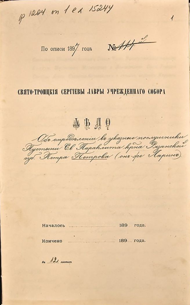 Чаще всего рязанские крестьяне находили работу и заработок в Москве. Так случилось и с Петром Лариным. До зрелых своих лет он трудился во «второй столице Империи» поваром [5]. С 1893 года значится послушником пустыни Святаго Духа Параклита Свято-Троицкой Сергиевой лавры [6]. В пустыни Петр исполнял обязанности келаря и нес клиросное послушание [7].