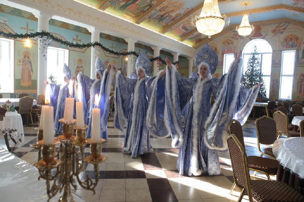 Спрашиваю о том, как дети попадают в приют, прошу рассказать о судьбах девочек. Но пришло время обеда, и матушка приглашает в трапезную, предлагает сначала подкрепиться и посмотреть концерт, а уж потом обо всем поговорить. Мы просим показать помещение, где едят дети. Интерьер и сервировка зала больше напоминают атмосферу института благородных девиц. На столе белые скатерти, хорошая посуда, столовые приборы…
