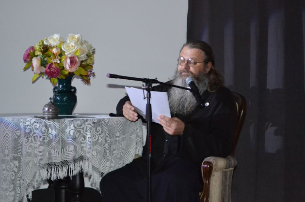 В начале выступления отец Даниил поделился своим впечатлением от знакомства с «великими литургистами своего времени» епископом Афанасием (Евтичем) и митрополитом Амфилохием (Радовичем). Он рассказал о незабываемых особенностях служения владык, а также о разнице восприятия Литургии русским народом и народом Черногории. Отец Даниил отметил и очень интересную для понимания Литургии деталь: в греческом языке «литургия» означает «функционировать». Греческий народ воспринимает Литургию очень действенно, а славянский – более статично, созерцательно. Созерцание имеет право быть и должно быть, но в свое время, когда человек уже произвел некое действие на Литургии. «И это очень похоже на делание молитвы Иисусовой, – заметил игумен Дайбабского монастыря. – Вообще закон Литургии абсолютно тот же самый, и все то, о чем говорили предыдущие докладчики, должен совершать человек и на Литургии». Эта служба одновременно и некое «ансамблевое» действие, и действие индивидуальное. Отец Даниил, завершая свой доклад, сравнил Литургию с оркестром, где каждый из музыкантов репетирует дома, а в день выступления все собираются вместе, и получается единая композиция: «Каждый играет простую партию, но все вместе мы должны слиться в нечто единое. К этому и стремимся на Литургии – к единению и общему движению Вверх».