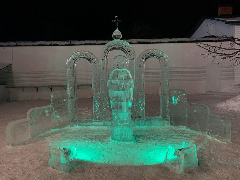 Рассказ о внешней, рукотворной красоте в монастыре будет неполным, если не упомянуть скульптуры, которые можно увидеть и на территории обители, и на подходе к ней. Два скульптора, Владимир Савельев и Анатолий Винокуров, став послушниками Раифы и получив от архимандрита Всеволода благословение на труды по их профессии, сумели придать неповторимость этому месту. Владимира Савельева, заслуженного художника Республики Марий Эл, не стало чуть больше года назад, но его скульптуры – «Святая преподобномученица Елисавета Феодоровна, «Ангел», «Преподобный Серафим Саровский», серия мраморных барельефов «Четыре евангелиста» на стене храма Грузинской иконы Божией Матери (за что он был удостоен Национальной премии в области декоративного искусства «Русская галерея – XXI век») и многие другие продолжают свидетельствовать о таланте умельца, данном Творцом. Анатолий Винокуров, помимо скульптур, делает декоративные фонтаны, каменные цветы и вазы, украшающие монастырскую территорию. И традиционно накануне праздника Крещения Господня он участвует в создании шедевров из льда (ныне первую часть ледового городка – наземную – открыли раньше, 2 января. И тематика в 2020 году – лики святых. Послушник Анатолий создал образ Святителя Николая с посохом).