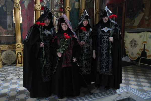 В праздничный день благочинная обители монахиня Кириена от имени всех сестер поздравила схимонахиню Евдокию, а также сестер и прихожан, которые пережили тяжелые военные годы.