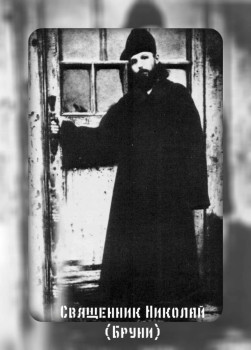 В начале лета двадцать седьмого года смутные и тревожные слухи сменились полной определенностью: собравшаяся сессия Синода выразила советской власти свою лояльность. В августе священника Бруни  вызвали в Калугу, где собравшимся пастырям объявили о решении высшей церковной власти. На закате того дня  отец Николай был уже дома, он не знал, на что решиться и как дальше жить. Но вот открылась дверь, и зашла заплаканная пожилая прихожанка и сообщила, что старец Нектарий умер. «Он свое отслужил», – сказала старушка сквозь слезы, и смутная память о давнем предсказании старца ожила в памяти отца  Николая. Время данного им Богу обета закончилось. Через неделю попадья Анна Александровна перешивала ему рясу на галифе. Николая Александровича ждали еще более суровые испытания, увенчавшиеся кончиной мученика.