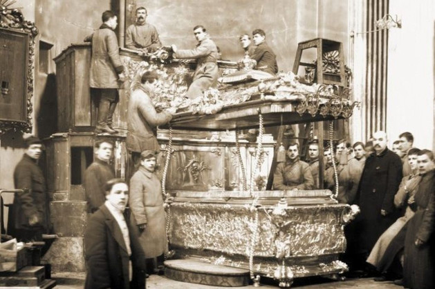 ***1922 год ознаменовался компанией по изъятию церковных ценностей, которая проходила при сопротивлении священства и мирян, что вызывало самую резкую реакцию со стороны новой власти.