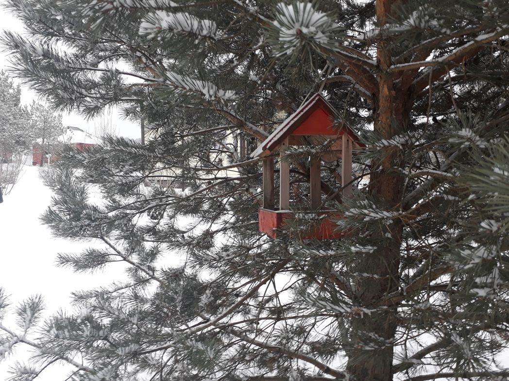 На подворье тихо, все идет своим чередом. Падает снег.