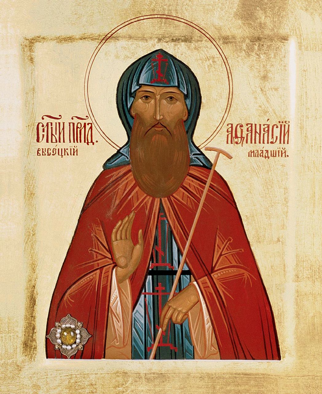 История обители связана с целым собором великих святых. Прославлены ее первые три игумена. Изначально возглавил монастырь преподобный Афанасий старший. Еще в Свято-Троицкой обители преподобного Сергия его почитали как мужа ученого и книгописца, много трудившегося для возрождения утраченной на Руси за годы татарского пленения преемственной связи с византийской духовной традицией. Господь устроил так, что Афанасий, оставив управление монастырем ученику, отправился в Царьград – сопровождая митрополита Московского Киприана, и прожил там более двух десятилетий, до самой кончины, в неустанной работе по переводу с греческого и переписыванию церковных книг. Рукописные книги, как и лучшие образцы иконописного искусства, преподобный отправлял на родину. Благодаря его трудам Высоцкий монастырь приобрел славу центра византизма на Руси.