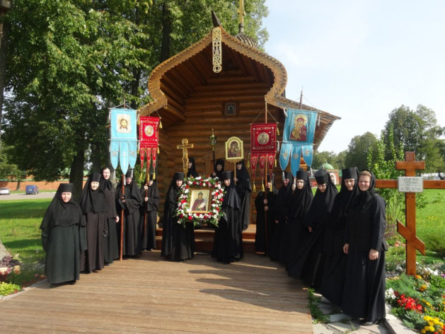 – 8 сентября, – рассказывает матушка игумения, – когда мы празднуем Сретение Владимирской иконы Божией Матери и день Бородинского сражения, после архиерейского богослужения традиционно совершается крестный ход от монастыря к главному монументу памяти бородинских воинов, на батарею Раевского. Крестный ход имел свое начало еще при жизни основательницы монастыря игумении Марии; ныне снова ежегодно идет торжественное шествие духовенства, монашествующих, мирян в сопровождении передвижной звонницы. У монумента служат благодарственный молебен «В воспоминание избавления Церкви и державы Российския от нашествия галлов и с ними дванадесяти язык», а также заупокойную литию по всем павщим воинам.